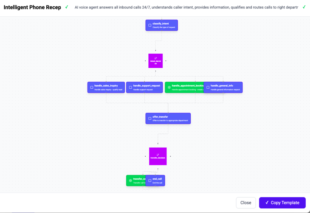 Customer-facing workflows include support ticket handling, lead qualification, and appointment booking. Operational workflows include document processing, invoice management, and reporting. The common thread: multi-step processes become autonomous workflows.